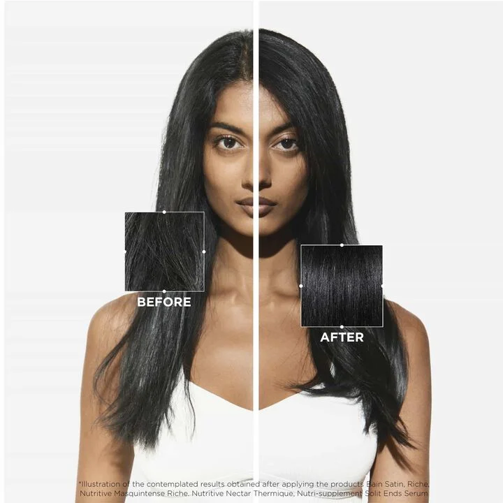 A Kérastase Nutritive Masquintense Riche é uma máscara capilar ultraconcentrada super nutritiva para cabelos muito secos médios a grossos. A textura espessa e cremosa da Máscara Masquintense Riche foi desenvolvida com nutrientes essenciais que aumentam a capacidade da fórmula de nutrir e fortalecer o cabelo. Essa máscara para cabelos muito ressecados deixa-os mais macios, brilhantes e com um toque acetinado. É por isso que a Masquintense Riche está entre as melhores máscaras capilares para cabelos mais grossos.