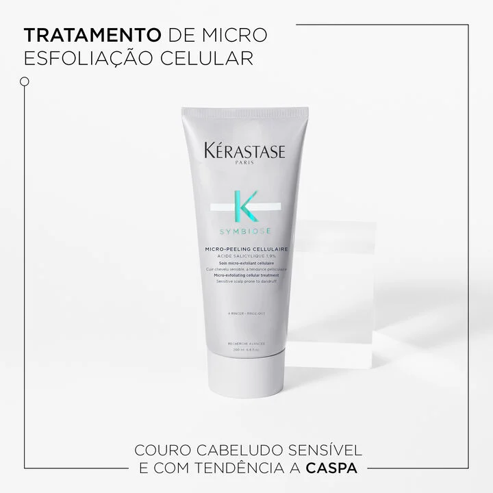 O Micro Peeling Kérastase Symbiose Cellulaire é um tratamento esfoliante capilar sem silicone. Com uma fórmula purificante, micro peeling com ácido salicilíco e grânulos à base de plantas. Esfolia instantaneamente as células mortas e escamas a nível biológico e visível, purificando o couro cabeludo e aliviando o desconforto da descamação. Após o uso, as raízes são aeradas e o cabelo revitalizado. *