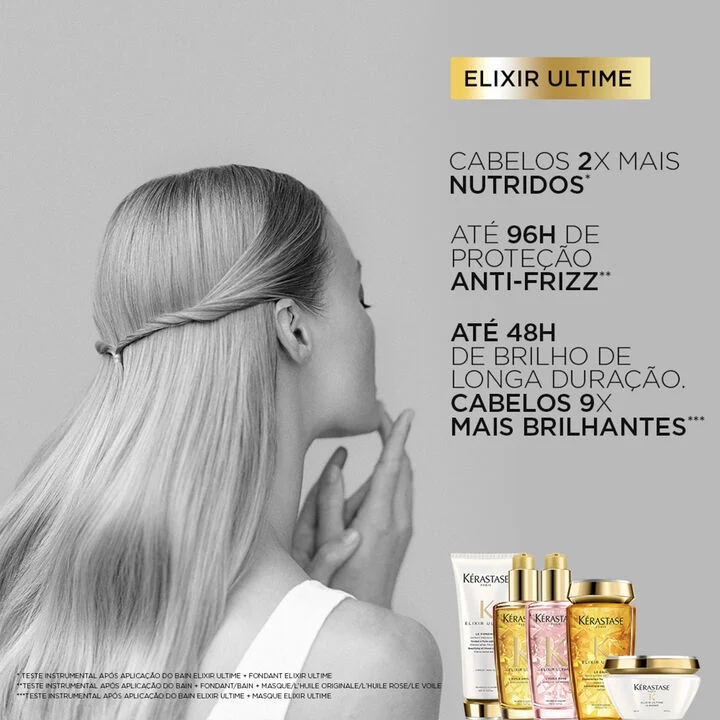 O Elixir Ultime Le Bain é um shampoo de nutrição que promove limpeza profunda suave para todos os tipos de cabelos, além de oferecer brilho radiante aos fios.