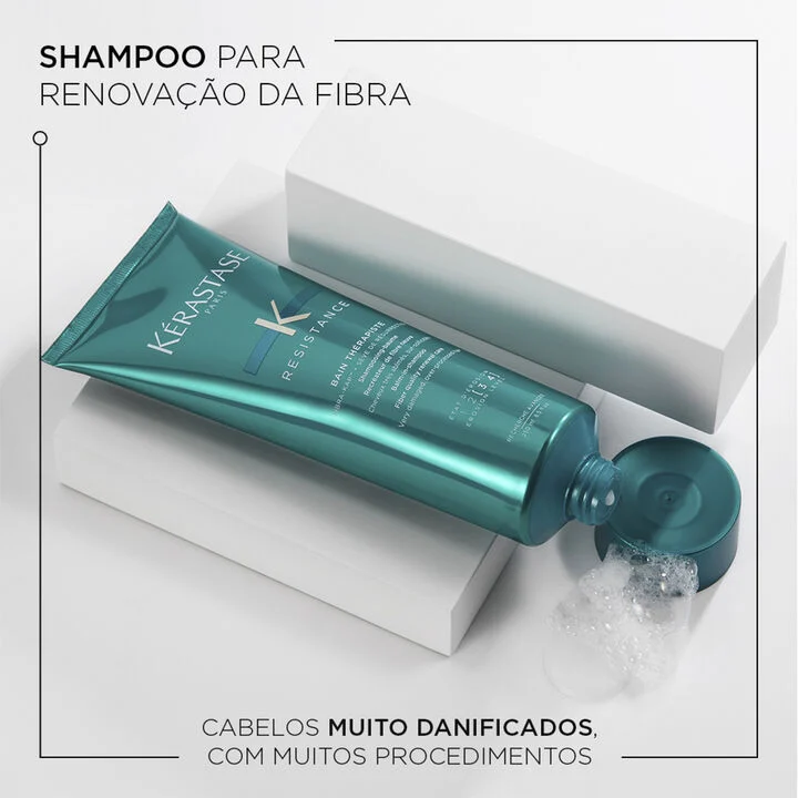 O Bain Thérapiste foi desenvolvido especialmente para cabelos extremamente danificados e submetidos a muitos processos químicos. Este shampoo para cabelos danificados possui textura gelatinosa que reduz o atrito durante a lavagem. Com a avançada tecnologia de Fibra KAP + Sève de Réssurrection, um inovador complexo que age durante a lavagem para proteger a fibra capilar, proporcionando maciez, brilho e revitalização profunda.