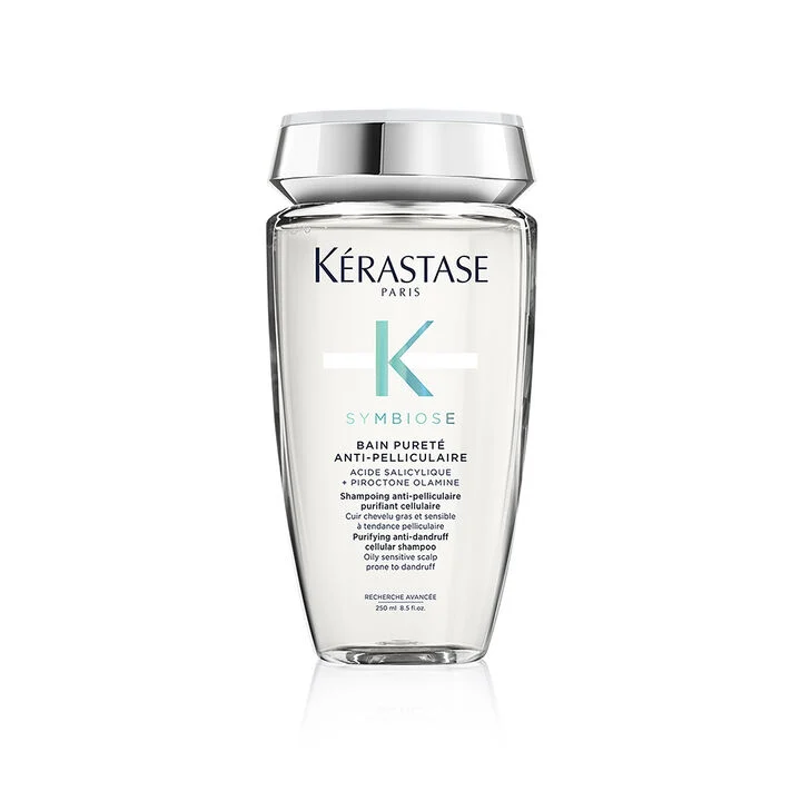 Symbiose Bain Pureté Anti-Pelliculaire da Kérastase é um shampoo celular purificante anti-caspa, sem silicone e sem sulfatos, para couro cabeludo oleoso e sensível com tendência para a caspa, contendo piroctona olamina que actua em todas as causas da caspa. Possui ácido salicílico, para um couro cabeludo respirável.