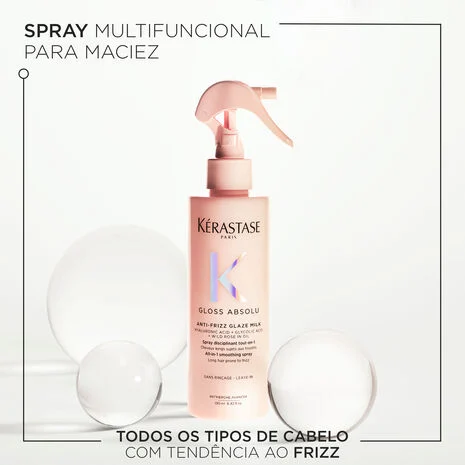 O Glaze Milk Anti-Frizz de Kérastase é um spray de brilho multifuncional para maciez e proteção térmica. Desenvolvido para todos os tipos de cabelo com tendência ao frizz. Foi especialmente formulado com Ácido Hialurônico, Ácido Glicólico e Óleo de Rosa Selvagem para proporcionar cabelos brilhantes e com elasticidade.